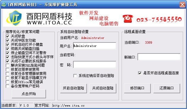 系統(tǒng)維護(hù)便捷工具 - 本工具由酉陽(yáng)網(wǎng)盾科技獨(dú)家開(kāi)發(fā)