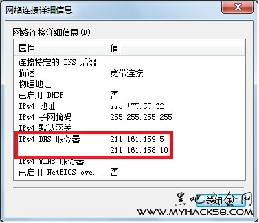 3、查看寬帶連接信息。選中 寬帶連接 后,右鍵查看其 狀態(tài),選擇 詳細(xì)信息,記下DNS服務(wù)器的兩個(gè)IP地址,很重要。∪缦聢D: