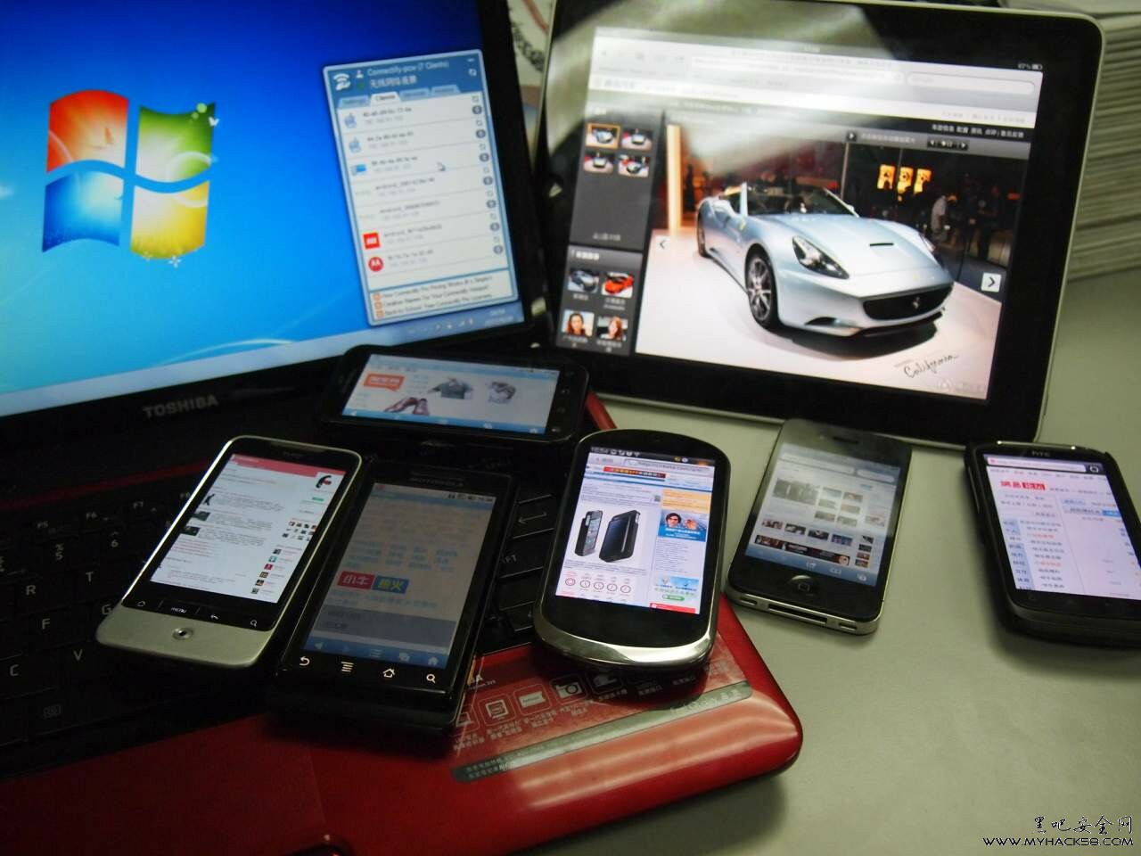 為了探究筆記本無(wú)線網(wǎng)絡(luò)共享在實(shí)際使用中的效果,我們從同事手中搜刮了一堆“戰(zhàn)利品”:蘋果 iPad、蘋果 iPhone、Moto Milestone 1、Moto ME525、聯(lián)想 樂(lè)Phone、HTC Legend G6、HTC Desire S G12。