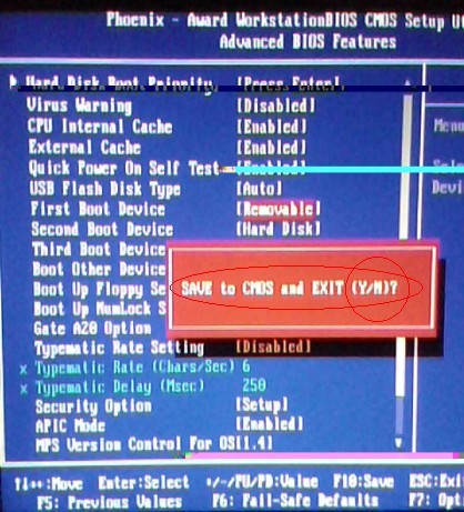 7.設(shè)置好啟動項,按F10 保存CMOS 設(shè)置 按Y確認(rèn)保存退出