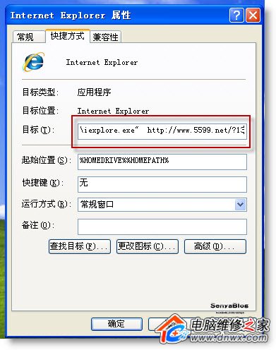 直接通過“Internet選項”或者修改注冊表[HKEY_LOCAL_MACHINE\SOFTWARE\Microsoft\Internet Explorer\Main]及[HKEY_CURRENT_USER\Software\Microsoft\Internet Explorer\Main] 項下的"Default_Page_URL"、"Start Page"的值,把IE主頁修改過來,可是關(guān)掉IE,再次運行IE時,仍然沒能修改過來! ‘斘矣益I單擊桌面上的Internet Explorer圖標,打開快捷菜單,單擊“屬性”命令時,發(fā)現(xiàn)這是一個IE瀏覽器的快捷方式,其命令后面有一個參數(shù),這個參數(shù)就是被設(shè)為主頁的網(wǎng)站地址。