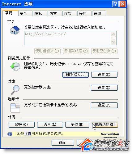 第二種情況:“Internet選項”的主頁部分全部是灰色,不能更改。