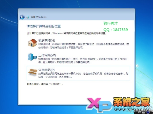 十三、選擇計(jì)算機(jī)位置,一般選家庭或工作,建議選工作網(wǎng)絡(luò)。