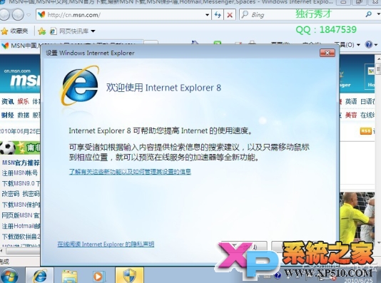 十五、下面是IE8的設(shè)置,打開(kāi)IE,跳出IE首次設(shè)置界面,直接下一步。