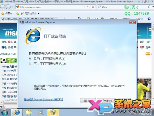 十六、第一步選“是的,打開(kāi)建議網(wǎng)站”,第二步選“使用快速設(shè)置”,完成。