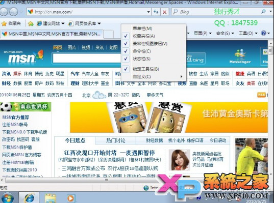十七、IE工具欄設(shè)置,工具條上右鍵,勾選菜單欄,去掉收藏欄的勾選(個(gè)人愛(ài)好)