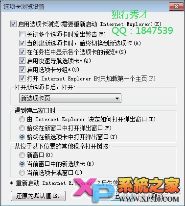 十八、設(shè)置IE主頁(yè)以及網(wǎng)頁(yè)在選項(xiàng)卡中的顯示的方式