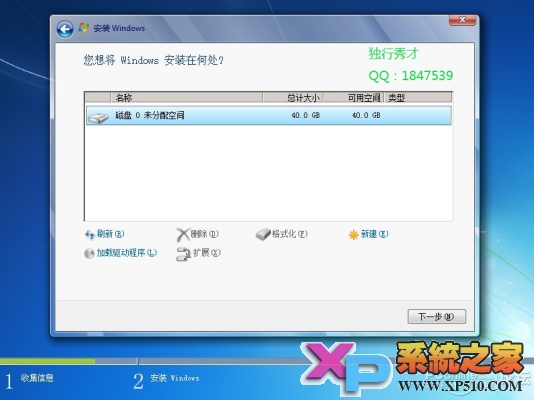 六、點(diǎn)選你要安裝的磁盤(pán)-格式化,格式化完成-下一步。這里要說(shuō)下,如果你是新硬盤(pán),建議先分兩個(gè)區(qū)。
