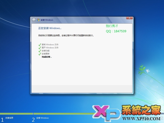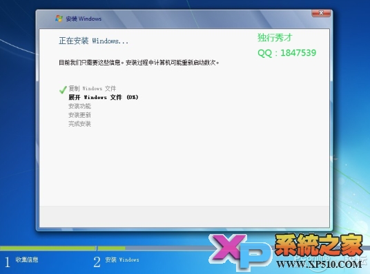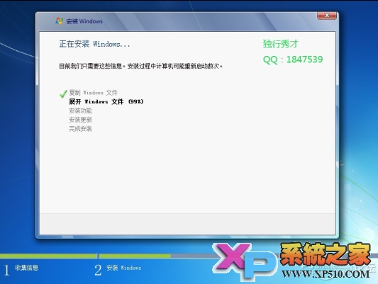 七、分區(qū)后,點(diǎn)下一步,開(kāi)始復(fù)制、展開(kāi)、安裝功能、安裝更新、完成安裝,期間會(huì)重啟一次