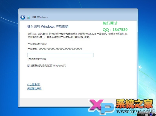 十、如果你有確定可以激活的密匙,就在這里輸入,如果想用激活工具激活的話,就不填直接下一步。