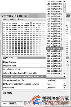 修改內(nèi)存SPD的方法很簡(jiǎn)單,在主界面下方找到內(nèi)存SPD的關(guān)鍵參數(shù)并進(jìn)行修改即可。以DDR2 667改DDR2 800為例: