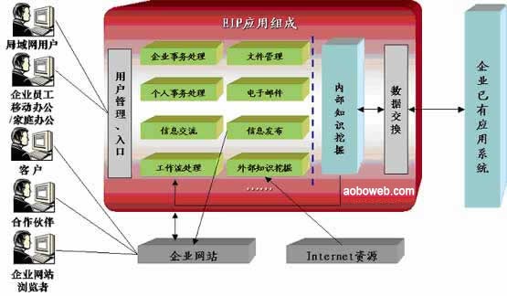 企業(yè)信息門戶平臺就是指在Internet的環(huán)境下,把各種應(yīng)用系統(tǒng)、數(shù)據(jù)資源和互聯(lián)網(wǎng)資源統(tǒng)一集成到企業(yè)信息門戶之下,根據(jù)每個用戶使用特點和角色的不 同,形成個性化的應(yīng)用界面,并通過對事件和消息的處理傳輸把用戶有機地聯(lián)系在一起。它不僅僅局限于建立一個企業(yè)網(wǎng)站, 提供一些企業(yè)、產(chǎn)品、服務(wù)信息,更重要的是要求企業(yè)能實現(xiàn)多業(yè)務(wù)系統(tǒng)的集成、能對客戶的各種要求做出快速響應(yīng)、并且能對整個供應(yīng)鏈進行統(tǒng)一管理。 同面向公眾的信息門戶相比,企業(yè)信息門戶肩負著企業(yè)最重要的使命--為企業(yè)客戶的投資增值創(chuàng)建最高效率的業(yè)務(wù)模式,其功能和特性都圍繞著企業(yè)間競爭所需的 一切高效率而生成,其最突出的特性就是對信息交流的實時雙向性的要求。在此基礎(chǔ)上,隨著具體功能的增加則可區(qū)分出不同的企業(yè)信息門戶應(yīng)用的水平。