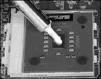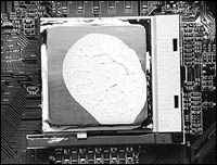 因?yàn)镃PU表面的Die部分太小,再加上某些CPU(如AMD Athlon XP)表面還有外露的電容、電阻及小金橋等,用散熱膏不當(dāng)隨時(shí)可能因短路使CPU燒毀,因此Athlon XP的安裝至今仍是DIY新手最難的一個(gè)畢業(yè)考試。有鑒于此,今天筆者就與大家一起探討哪種涂散熱膏的方法才是最恰當(dāng)?shù)摹?/FONT>
