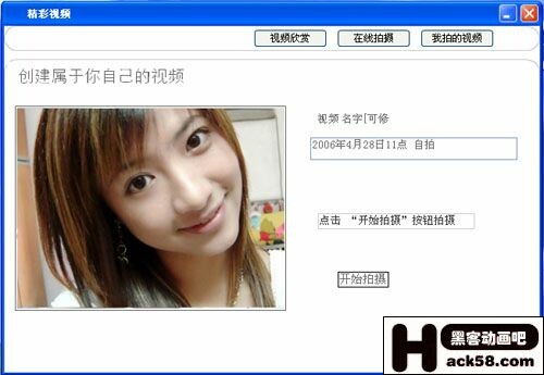 雙擊桌面上的“精彩視頻”圖標,在彈出的窗口中,選擇“在線拍攝”功能,輸入視頻的名稱,點擊“開始拍攝”即可(圖3)。
