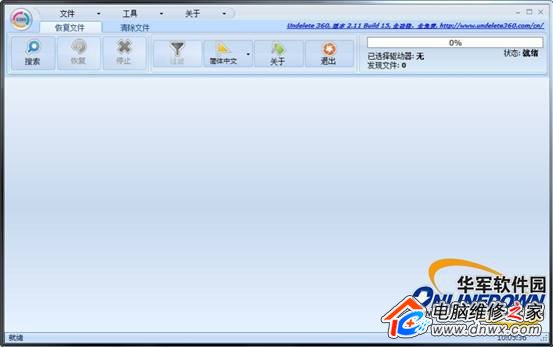 切換至簡(jiǎn)體中文的操作界面,我們可以看到360數(shù)據(jù)恢復(fù)軟件的界面設(shè)計(jì)比較簡(jiǎn)單,沒有一點(diǎn)修飾成分,功能按鈕也比較少,看起來(lái)非常簡(jiǎn)單,如圖: