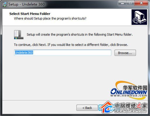 本期為大家介紹的360數(shù)據(jù)恢復(fù)軟件,正式名稱為Undelete 360,是一款來(lái)自國(guó)外的數(shù)據(jù)恢復(fù)工具,而不是國(guó)內(nèi)的奇虎360的產(chǎn)品。該軟件的安裝過(guò)程非常簡(jiǎn)單,雖然只提供了英文安裝語(yǔ)言,但是整個(gè)安裝過(guò)程沒有一點(diǎn)難度,用戶根據(jù)安裝向?qū)У奶崾疽宦伏c(diǎn)擊“Next”按鈕即可輕松完成安裝。該軟件的安裝過(guò)程中支持用戶自定義安裝路徑、支持用戶自由選擇創(chuàng)建開始菜單文件夾,如圖: