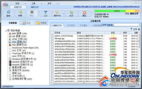 用戶可以按照文件類別分組查看掃描到的文件,下圖所示為筆者選擇查看掃描到的類屬于JPEG格式的文件,如圖: