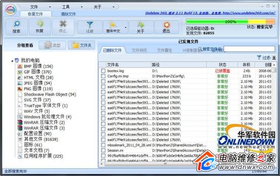 掃描過(guò)程非?焖伲瑨呙柽^(guò)程完畢用戶將在主程序界面上看到本次掃描任務(wù)中檢測(cè)到的所有可以恢復(fù)的文件,如圖: