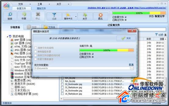 筆者保持程序默認(rèn)參數(shù)執(zhí)行文件恢復(fù)操作,可以看到文件恢復(fù)的速度非常的快,很短的時(shí)間即恢復(fù)完畢,用戶可以直接點(diǎn)擊“打開”按鈕進(jìn)入恢復(fù)文件所在文件夾查收已經(jīng)恢復(fù)的文件,如圖:
