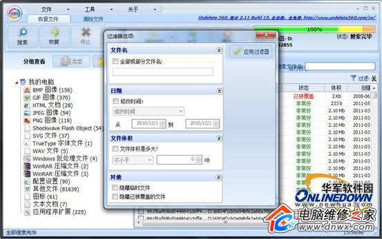 360數(shù)據(jù)恢復(fù)軟件還提供了一個(gè)文件過(guò)濾器,方便用戶快速查找并定位需要恢復(fù)的文件,支持用戶按照文件名進(jìn)行查找,也可以按照修改時(shí)間進(jìn)行查找,或者按照文件體積進(jìn)行查找,如圖: