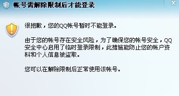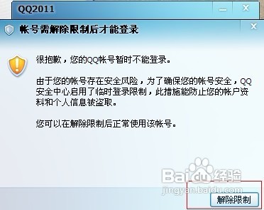 然后點擊登陸會出現(xiàn)帳號需要解除限制后才能登錄,這時候點擊解除限制