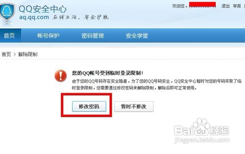 然后瀏覽器會打開一個新的頁面,有兩個選擇,我們可以選擇修改密碼,也可以選擇暫時不修改 (這里不建議這個步驟,除非你不記得密保),這時候直接跳到第六步。