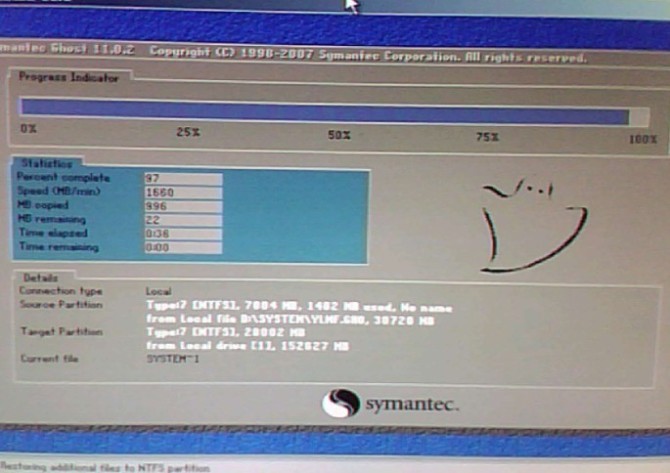 當(dāng)Ghost復(fù)制完數(shù)據(jù)后,有些系統(tǒng)會提示重啟,有些不會。