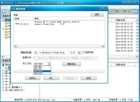 5.選擇寫入方式,一般都為USB-HDD+ 還要注意選擇你的U盤