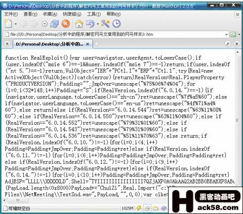 而無法顯示網(wǎng)頁(yè)代碼的。就到IE緩存中尋找被保存到本地的網(wǎng)馬文件,用我提供的辦法應(yīng)該可以解開絕大部分的網(wǎng)馬了,