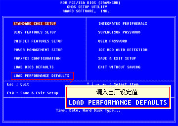 你看,這一項“LOAD SETUP DEFAULTS”是“調(diào)入出廠設定值”的意思,實際上就是推薦設置,即在一般情況下的優(yōu)化設置。