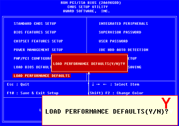 將光標用上下箭頭移到這一項,然后回車,屏幕提示“是否載入默認值”。