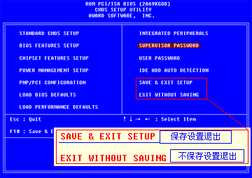 還有最關(guān)鍵的一步,就是要將剛才設置的所有信息進行保存,選擇 “SAVE & EXIT SETUP”這一項,它是保存并退出的意思。