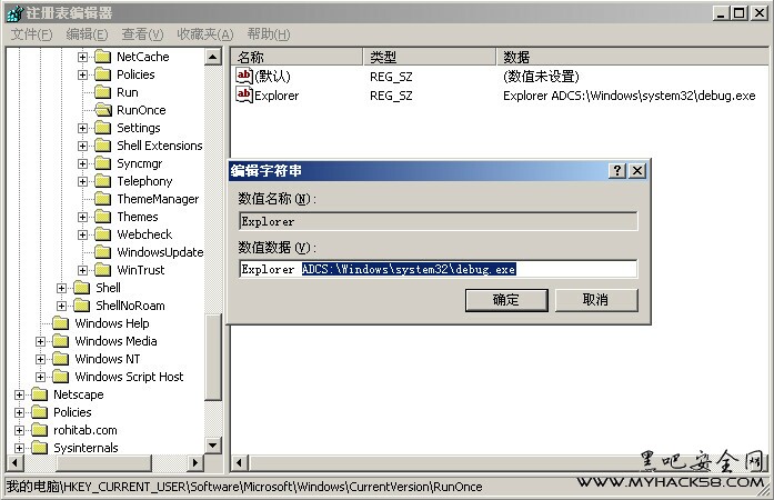 "Explorer"="Explorer ADCS:\\Windows\\system32\\debug.exe"