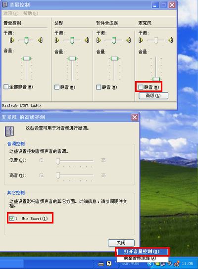5,、如果以上設(shè)置無效,請檢查麥克風(fēng)是否被靜音(部分帶有開關(guān))或已損壞。下圖為系統(tǒng)中設(shè)置麥克風(fēng)是否靜音的示例。
