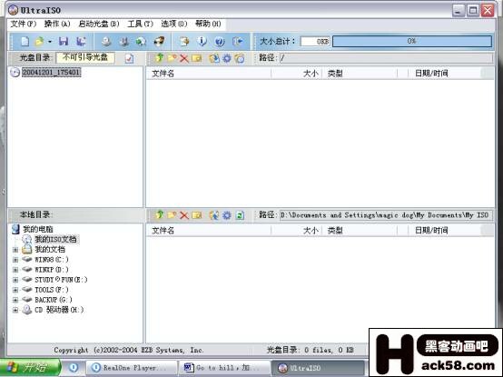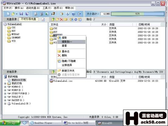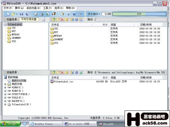 后來,我又想用UltraISO_v6.52(一個(gè)光盤刻錄軟件)把這張光盤制作成鏡像文件保存在本機(jī),然后再從鏡像文件中提取我需要的DAT影音文件: