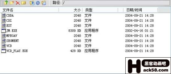 接下來選擇好路徑,幾分鐘后,該文件便被提取到我們指定的地方,我們也理所當(dāng)然的得到了MPEGAV里的DAT文件了——可是這招對(duì)普通加密光盤好用,對(duì)《GF》卻不知道為什么不起作用了。我可以把它制作成ISO文件,大小也沒有變,還是580兆,但是當(dāng)我再次打開這個(gè)鏡像文件時(shí),在右上邊的窗口顯示的卻是這幾個(gè)文件,如圖7所示。