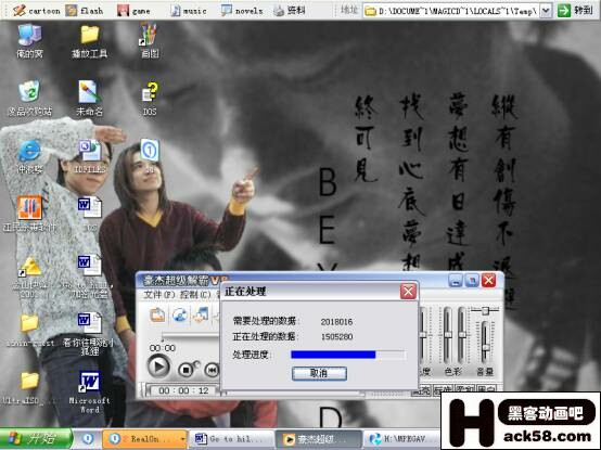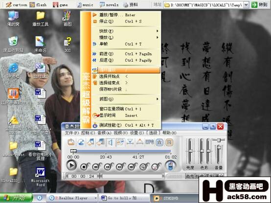 一會(huì)兒豪杰超級(jí)解霸V8竟然播放出光驅(qū)里的電影了,激動(dòng)ing……,忙了這么久總算有點(diǎn)進(jìn)展了,下面我們來想想怎樣才能把這部電影保存在本機(jī)呢?