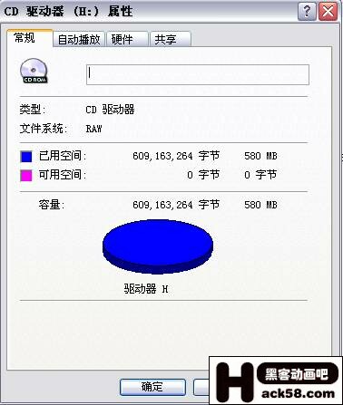但是通過查看磁盤屬性卻可以看到整張光盤大小為580MB,如圖2所示。