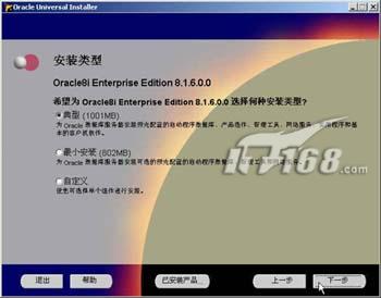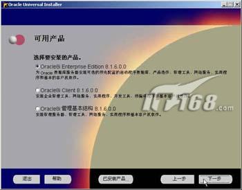 5、接著出現(xiàn)安裝選項(xiàng)!癘racle 8i Enterprise Edition 8.1.6.0.0”為數(shù)據(jù)庫主程序,包括管理工具、實(shí)用程序和基本的客戶機(jī)軟件等,默認(rèn)首先安裝;第二項(xiàng)為客戶端管理工具;第三項(xiàng)為服務(wù)器端管理工具。按其默認(rèn)選項(xiàng)點(diǎn)擊“下一步”
