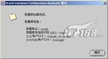 12、經(jīng)過幾分鐘,當(dāng)彈出下面的安裝提示時(shí),表示數(shù)據(jù)庫創(chuàng)建完成,并顯示出相關(guān)信息。