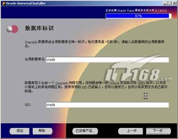 7、命名數(shù)據(jù)庫。全局?jǐn)?shù)據(jù)庫名:指唯一在你的網(wǎng)絡(luò)域中區(qū)別于其他數(shù)據(jù)庫的完整數(shù)據(jù)庫名,例如:sales.acme.com其中sales是你想要調(diào)用的數(shù)據(jù)庫名,而acme.com是數(shù)據(jù)庫所在的網(wǎng)絡(luò)域。而系統(tǒng)標(biāo)識(shí)符(SID),是指唯一在你的網(wǎng)絡(luò)域中區(qū)別于其他數(shù)據(jù)庫的數(shù)據(jù)庫實(shí)例名。SID域缺省為全局?jǐn)?shù)據(jù)庫名的數(shù)據(jù)庫部分(上例的sales)( 最長8個(gè)字符或輸入一個(gè).)。你可以接受或改變?nèi)笔≈。輸入完成后點(diǎn)“下一步”,安裝程序開始處理數(shù)據(jù)庫標(biāo)識(shí)。