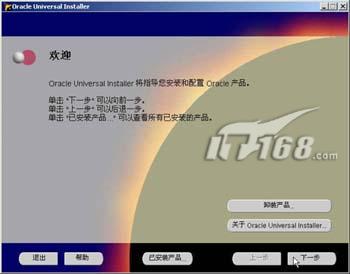 2、在下圖的向?qū)Ы缑嬷悬c(diǎn)擊“已安裝產(chǎn)品…”,可以查閱本機(jī)是否已安裝Oracle其它版本,以免造成沖突