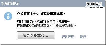 以QQ郵箱的切換為例,當(dāng)網(wǎng)速不快的時(shí)候,郵箱會(huì)在進(jìn)入之前提示切換到基本版。