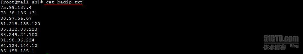 查看一下badip.txt文件,里面添加的是被攻的IP地址信息。