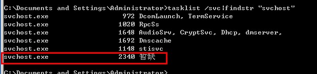 就一句 命令 : tasklist /svc|findstr "svchost"