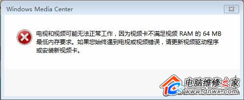 接下來筆者談?wù)勗谠囉抿?qū)動時發(fā)現(xiàn)的幾個問題。一是Windows Media Center(簡稱WMC)程序無法啟動。筆者在測試中發(fā)現(xiàn)要啟動WMC,顯卡必須擁有64MB以上顯存,否則系統(tǒng)會提示“電視和視頻可能無法正常工作,因為視頻卡不能滿足RAM的64MB最低內(nèi)存要求”(如圖)。二是Aero特效。根據(jù)在不同驅(qū)動程序下的多次測試的結(jié)果,早期的顯卡雖然能夠強行打開Aero特效,但是無法正常顯示,最多只能看到鼠標(biāo)移動,桌面上所有內(nèi)容都無法顯示,但是非Aero主題還是能夠正常使用。