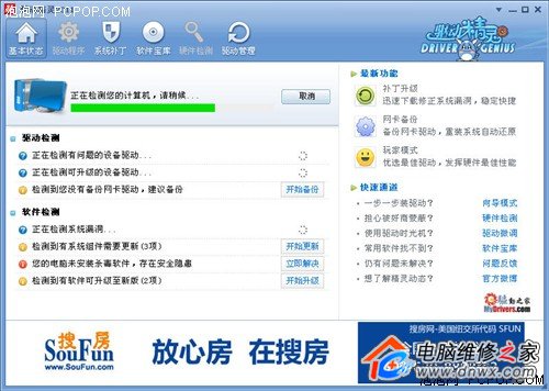 而接下來(lái)筆者要介紹的,是借助《驅(qū)動(dòng)精靈》軟件的驅(qū)動(dòng)安裝方法,它直觀,簡(jiǎn)單,只要您能聯(lián)網(wǎng),就能輕松搞定這些驅(qū)動(dòng)。此方法對(duì)XP系統(tǒng)同樣有效。