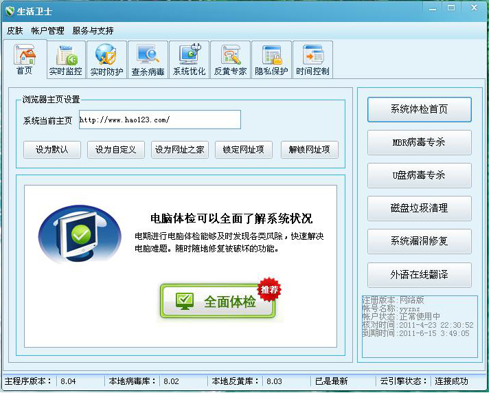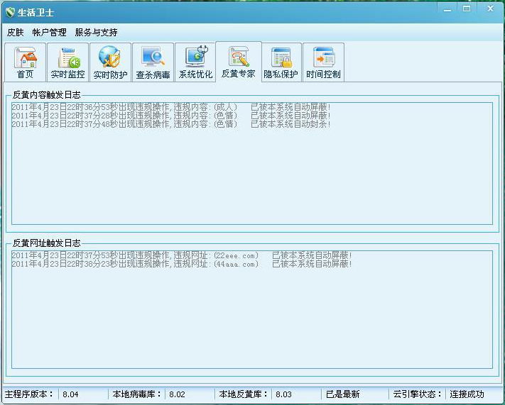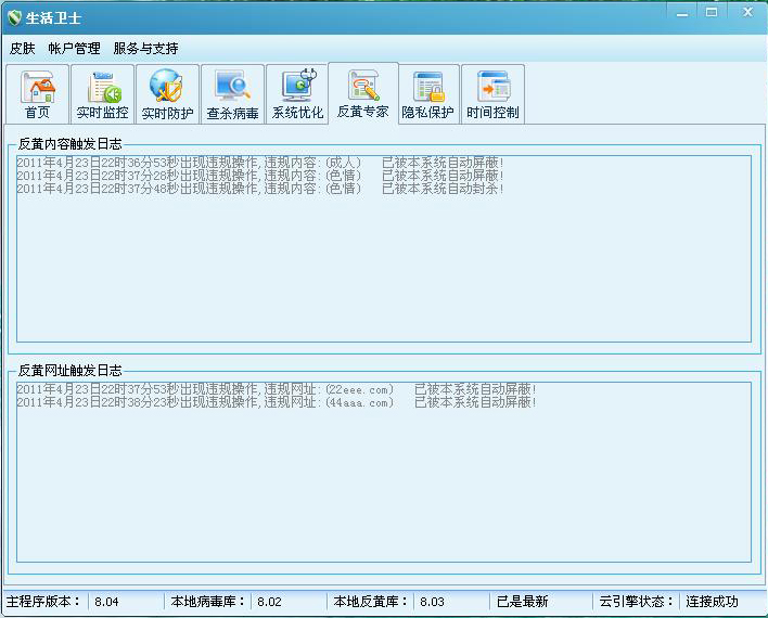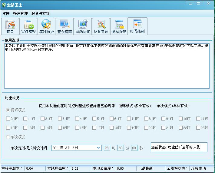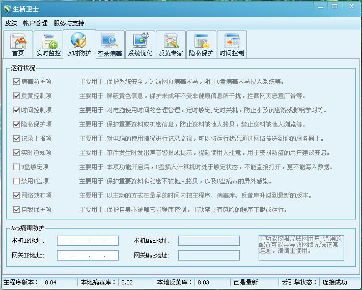 軟件功能簡(jiǎn)要如下:生活衛(wèi)士是一個(gè)集防毒、殺毒、反黃控制、隱私保護(hù)、時(shí)間控制、